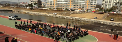 À̳¯ ±â°ø½Ä¿¡´Â Á¤»óÇõ ±º¼ö¸¦ ºñ·ÔÇØ 200¿©¸íÀÇ Áö¿ªÁÖ¹ÎÀÌ Âü¼®ÇØ º¸Àº´ë±³ °Ç¼³¿¡ ´ëÇÑ ÁֹεéÀÇ ¶ß°Å¿î °ü½ÉÀ» º¸¿´´Ù.