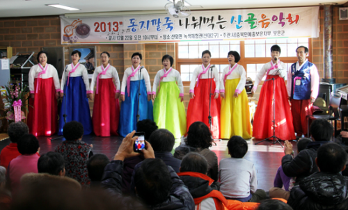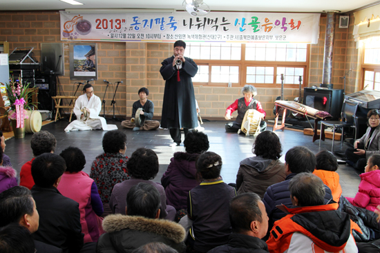 | ÃæºÏ¹Î¿¹ÃÑ º¸ÀºÁöºÎ°¡ ¸¶·ÃÇÑ »ê´ë¸® »ê°ñÀ½¾Çȸ¿¡¼ dz¹°±ÂÆÐ ¶¥¿ï¸² ȸ¿øµéÀÌ '¹Ð¾ç¾Æ¸®¶û'°ú' ¹î³ë·¡' µî ¹Î¿ä¸¦ ºÒ·¯ Å« È£ÀÀÀ» ¾ò¾ú´Ù. |