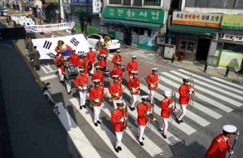 ½Ã°¡ÇàÁø¿¡ Âü°¡ÇÑ ³ëº´µéÀº ¾î·Á¿ò ¼Ó¿¡¼µµ ³ª¶ó¸¦ ÁöÄѳ´ø ´ç´çÇÑ ¸ð½ÀÀ» ¼±º¸¿© Áö¿ªÁֹεé·Î ºÎÅÍ ¸¹Àº ¹Ú¼ö¸¦ ¹Þ¾Ò´Ù.