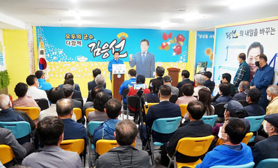 °³¼Ò½Ä¿¡´Â °°Àº ´ç ¼Ò¼Ó ³ë¿µ¹Î ÃæºÏµµÁö»ç Èĺ¸, ¹Ú¹®Èñ ÃæºÏµµÀÇÀå, ÀÌÀçÇÑ ¹ÎÁÖÆòÈÅëÀÏÀÚ¹®È¸ÀÇ ÃæºÏºÎÀÇÀå, ±ºÀÇ¿ø ¿¹ºñÈĺ¸, ´ç¿ø°ú ÁöÁöÀÚ µî 300¿©¸íÀÌ Âü¼®ÇØ ±èÀÀ¼± ¿¹ºñÈĺ¸ÀÇ ¼±°Å»ç¹«¼Ò °³¼Ò¸¦ ÃàÇÏÇß´Ù.